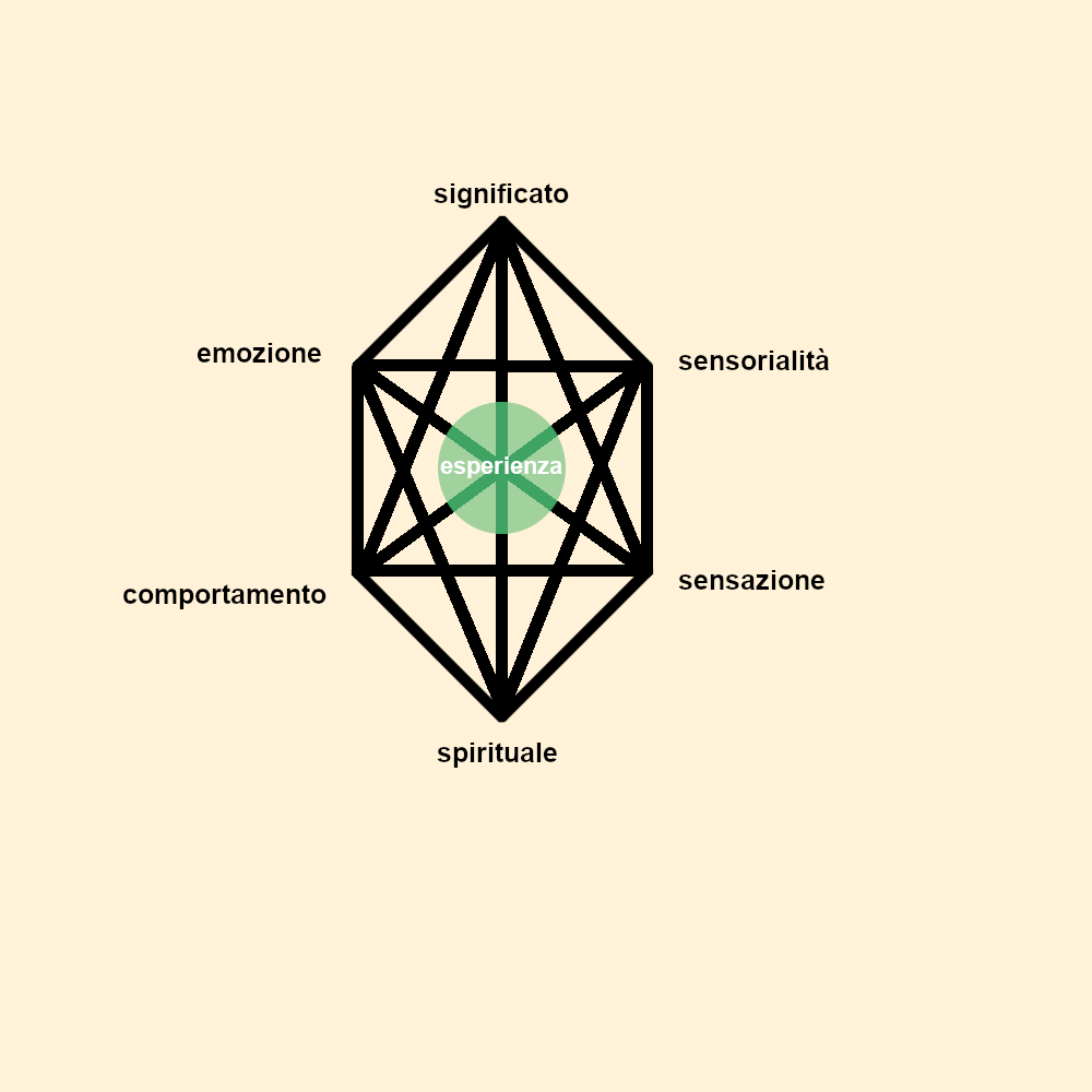 Peter Levine, con una provenienza ed una formazione scientifica in psichiatria ed una vocazione al lavoro sul trauma, ha suddiviso l’esperienza umana in cinque piani: sensazione, emozione, immagine (sensoriale), comportamento e significato. In questo, la base del Metodo Somatic Experiencing sta proprio nella sensazione in quanto principale veicolo attraverso il quale il sistema nervoso autonomo si esprime, un principio sul quale si basano diverse tecniche e metodi, primo fra tutti il Focusing di Eugene Gendlin che è stato il primo a inquadrare questa modalità.Naturalmente si tratta sempre di descrizioni dell’esperienza umana (non la verità quindi) elaborate con fini pratici/terapeutici, dunque e per inciso, essendo elaborate ed utilizzate da terapeuti e ricercatori eminentemente laici, forse anche cercando la massima semplificazione tutti (o quasi) tralasciano l’ambito spirituale che manca perciò con una certa evidenza.